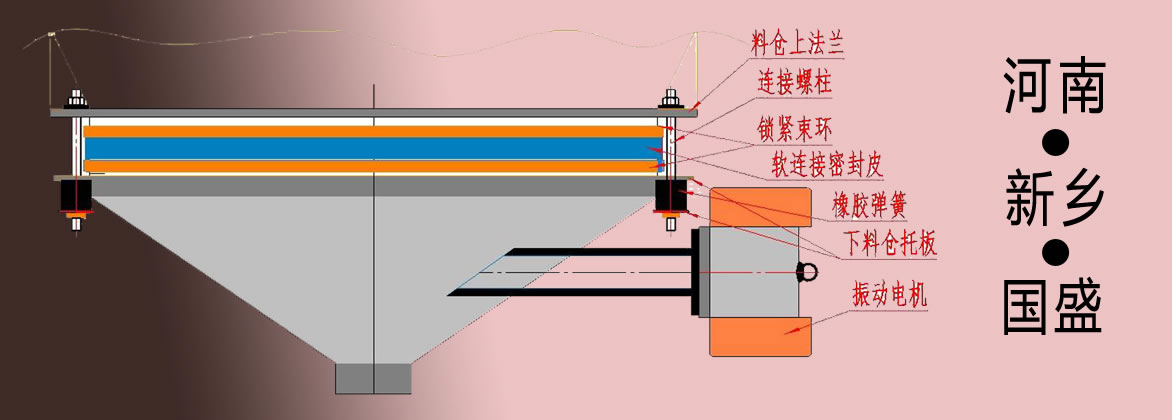首先,先把固定斗用螺栓固定在儲(chǔ)料倉(cāng)下部的法蘭上,再將振動(dòng)料斗用減振裝置吊掛在固定斗下方。固定斗下平面和振動(dòng)料斗上平面之間的縫隙用橡膠套密封。注意振動(dòng)料斗出料口和受料口間須留10-20mm間隙。